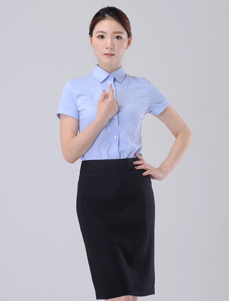 兰州韩版女衬衫订做公司,女款纯棉衬衣定做加工厂 武汉淡蓝女款短袖衬衫定做,行政女衬衣订制加工厂家 西安定做航空女式衬衫,高铁女衬衣订做加工厂家