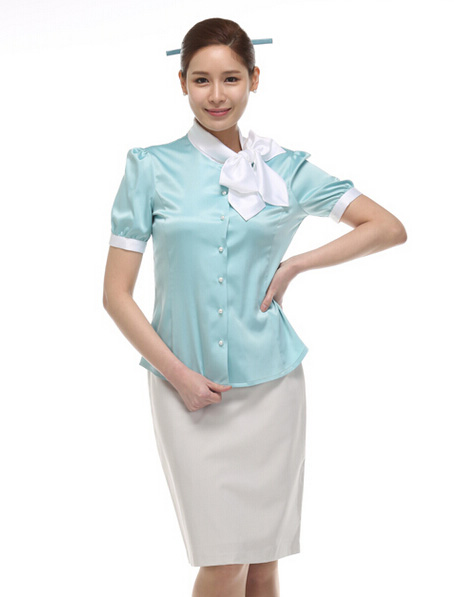 广州淡蓝韩版女衬衫设计定做,短款衬衣订做厂家 兰州韩版女衬衫订做公司,女款纯棉衬衣定做加工厂 西安定做航空女式衬衫,高铁女衬衣订做加工厂家