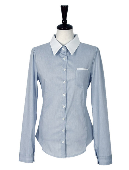 武汉淡蓝女款短袖衬衫定做,行政女衬衣订制加工厂家 西安定做航空女式衬衫,高铁女衬衣订做加工厂家 广州淡蓝韩版女衬衫设计定做,短款衬衣订做厂家