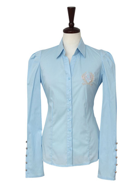 广州淡蓝韩版女衬衫设计定做,短款衬衣订做厂家 兰州韩版女衬衫订做公司,女款纯棉衬衣定做加工厂 西安定做航空女式衬衫,高铁女衬衣订做加工厂家