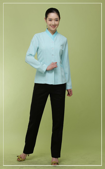 兰州定做豆绿色保洁工作服,客房短袖工服定做厂家 广东定制中式保洁工服,订做短袖立领保洁员制服 重庆订做短袖保洁工服,立领保洁制服定做厂家